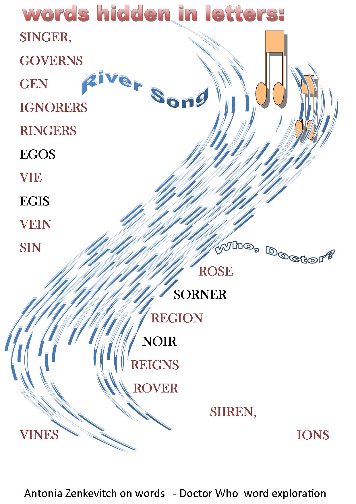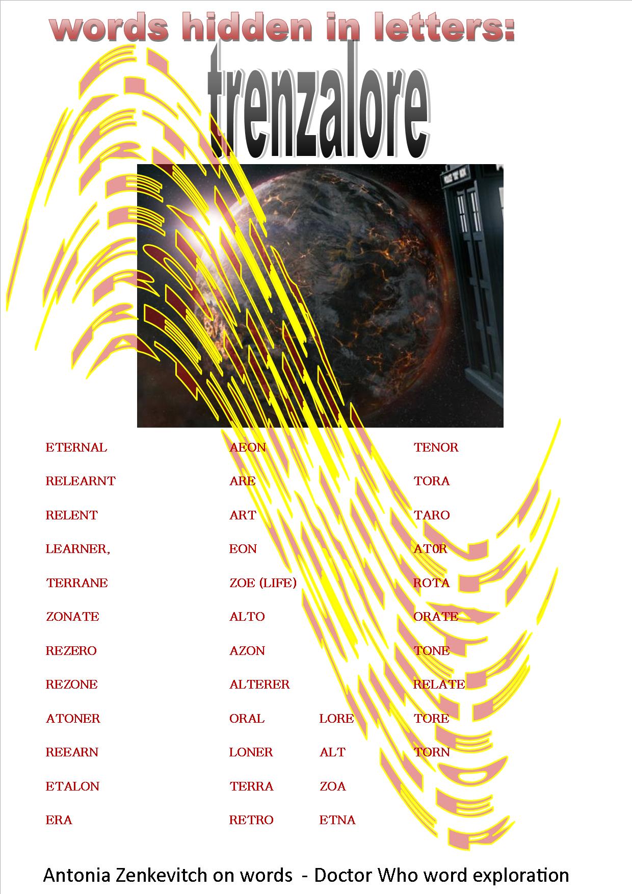 The threat of The Silence or The Doctor’s Song ending at Tenzalore open up the sense of the force that are words. The nature of The man with blue box; the nature of time, cycles of life and regeneration are held within the words that can be made by all or part of the name for The Doctor’s Tomb. If you don’t believe me, see for yourself in the picture I made below: