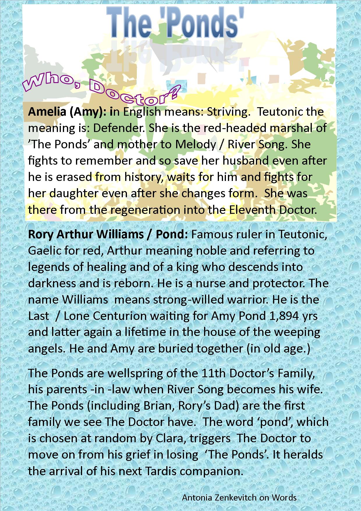 Astrid Peth, from ‘Voyage of the Damned’, whose name can translate as ‘path of stars’ for example, ends up being called ‘star dust’ when a non-corporeal form of her left after saving The Doctor, is released in atoms to travel the universe. The letters of her name can also be re-arranged to spell star depth / star tide. The man with the sonic screwdriver has a world of words around him, hiding mysteries and possible character story-lines in names. Names hidden, disguised and revealed are within many cultures and mysteries, rich stories and histories woven around their meaning and cadence.
